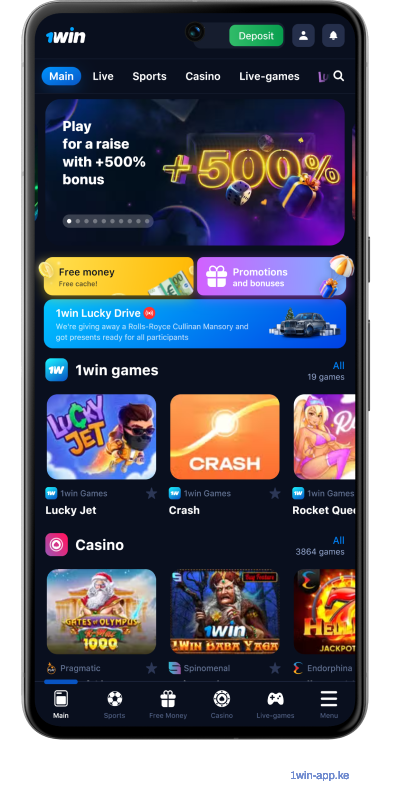 As soon as you download the mobile app of 1win, you will get 7,000 KSh with no wagering stipulations. This no-deposit reward has no other conditions; just get the software from the original bookmaker’s site and install it.