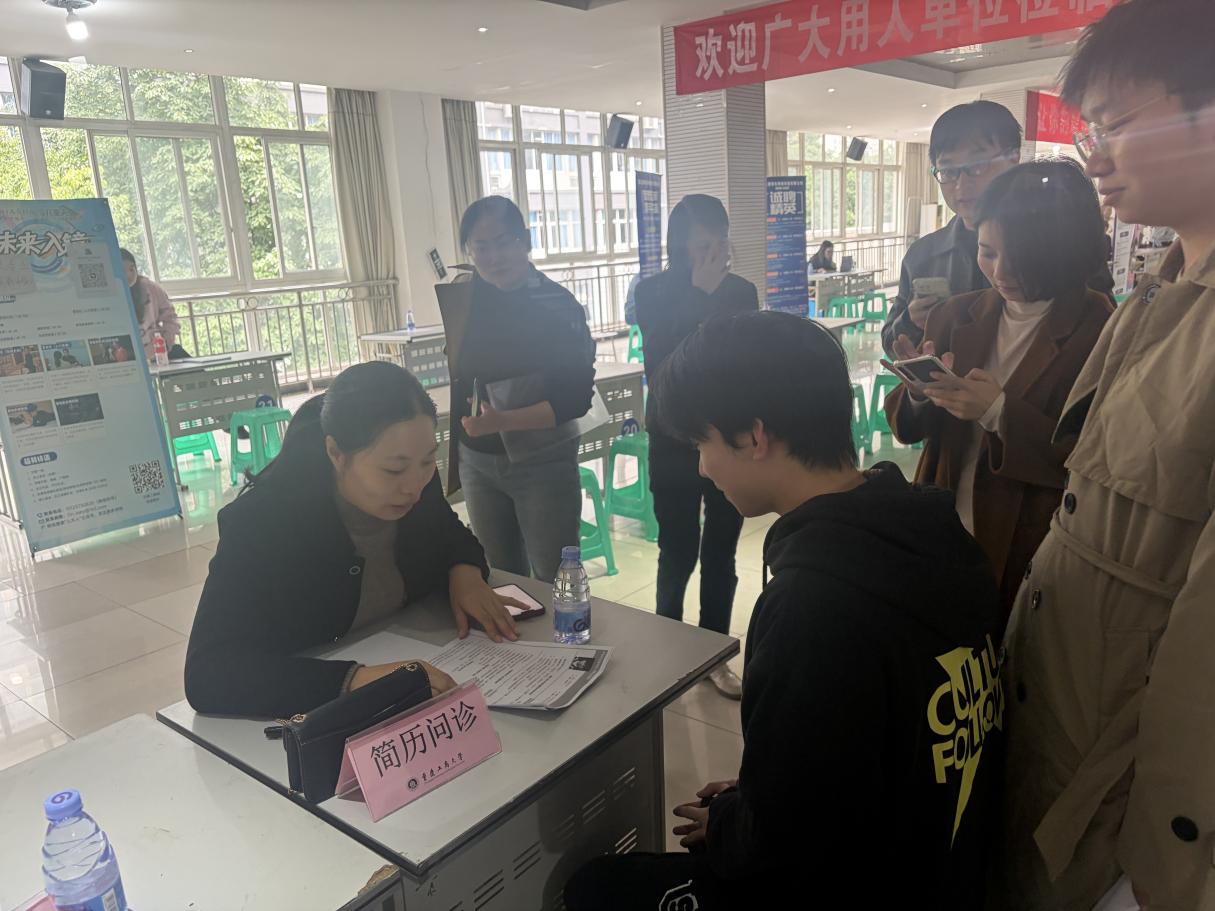 招聘会现场人气火爆,秩序井然。同学们手持精心准备的简历,积极与用人单位招聘人员就岗位职责、薪酬福利及职业晋升通道等关键问题进行深入交流,展现了清晰的职业规划与积极的求职心态。企业招聘人员也耐心细致地向学生们介绍公司情况,解答疑问,现场互动频繁,气氛热烈。